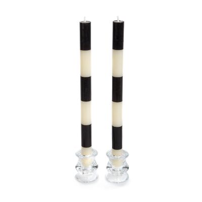 Turn your everyday meals into something more memorable with our Black Six Bands Dinner Candles. They feature a fun and fresh hand-painted pattern of wide horizontal stripes that add the glowing touch of MacKenzie-Childs to your dining table. This set of two beeswax-blend candles will cast a lovely lustre on your table for up to 10 hours.