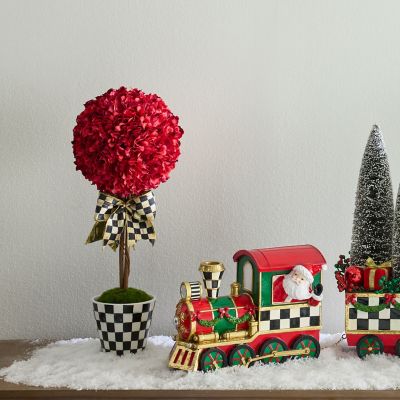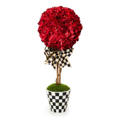 Add instant MacKenzie-Childs style with our Small Red Topiary Drop In. Resembling a lush hydrangea, this everlasting floral accent is decorated with a Courtly Check® bow and set in a Courtly Check ceramic base. Display as-is or drop in the Courtly Stripe Tabletop Urn or the Courtly Check Pedestal Tabletop Urn (sold separately) for an elevated presentation.