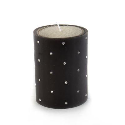 There are few things more comforting than the warm cast of a dancing flame. Our 4″ Black Small Diamond Pillar Candle, a blend of beeswax and paraffin, is embellished with rhinestones that add extra sparkle. It makes a thoughtful hostess gift, or create a dramatic centerpiece by grouping it with pillars and dinner candles of varying heights.
