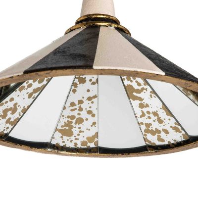 This pendant lamp makes an enlightening statement with bold black and ivory stripes hand-painted on its metal shade, which has a mirrored interior. The 36-inch rod is adjustable to shorter lengths. Display singly or in multiples over a kitchen island.