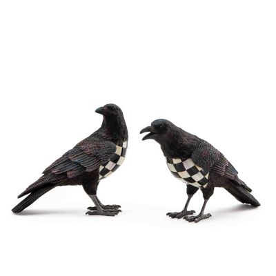 Let Halloween take flight with this set of two beautifully hand-painted crows with accents of Courtly Check®.