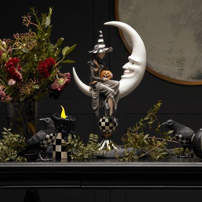 Let Halloween take flight with this set of two beautifully hand-painted crows with accents of Courtly Check®.