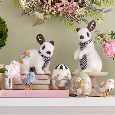Spring ahead with this standing felted bunny. It’s embellished with hand-stitched, felted flowers and Courtly Check® on the ears, belly, and tail.