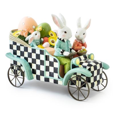Spring ahead with this adorable hand-painted rabbit family riding into the season in a Courtly Check® car and carrying a precious cargo of Easter eggs ready for delivery.