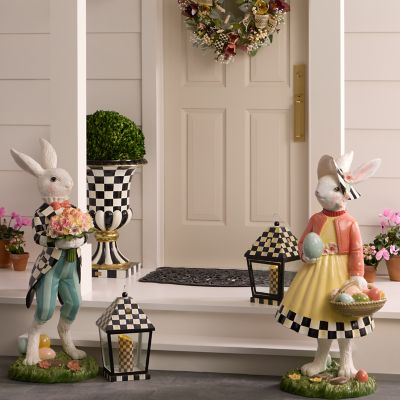 Set the scene for spring outdoors or indoors with this weather-resistant, hand-painted Mr. Rabbit. Dressed for the Easter parade in a Courtly Check® jacket and carrying a big floral bouquet, he makes quite the statement, especially when displayed with the matching Mrs. Rabbit.