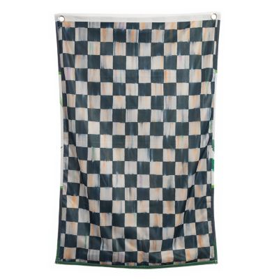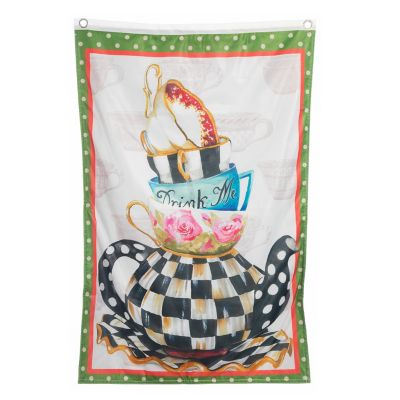 Long may the Stacking Teacups Flag wave, offering a greeting to guests and a bit of whimsy. This polyester flag is made of two layers of fabric treated for outdoor use, with Courtly Check® on the back. It hangs vertically from grommeted fasteners on any outdoor flag display.