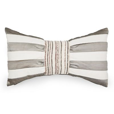 The Sterling Bow Throw Pillow is grey, white, and wow! Striped grey and white polished cotton gets a cinch in the center from an embroidered and beaded band. Bonus points for this one because its simple stylishness goes with so many of our collections!