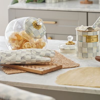 For the host who makes entertaining look easy, our Sterling Check® Bistro Oven Mitt protects your hands from the heat. Covered with our color-dragged grey and white checks, this kitchen necessity makes the path from oven to table a stylish one.