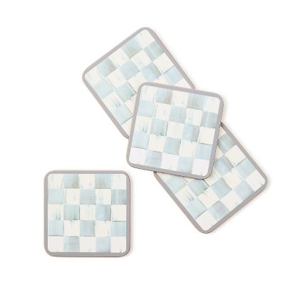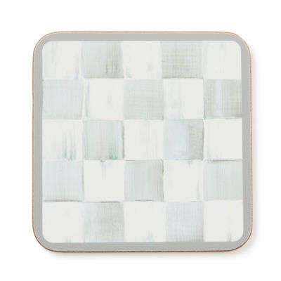 Top your table with our set of four Sterling Check® Cork Back Coasters. The heat-resistant lacquered surface features an art print of our color-dragged grey check pattern on hardboard substrate backed with natural cork.