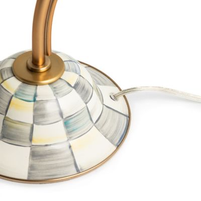 Our Sterling Check Desk Lamp takes task lighting to a new level of style. Our Sterling Checks are presented on a flared shade and base made of hand-painted enamel and trimmed with brass. Plus, the shade pivots for extra function.