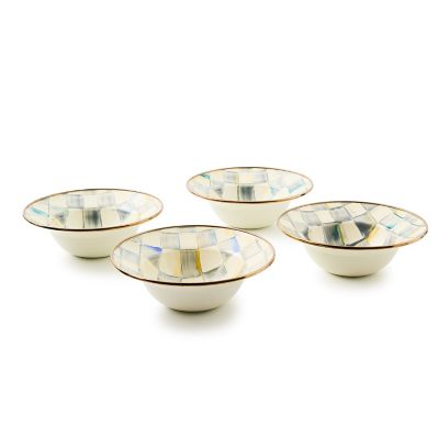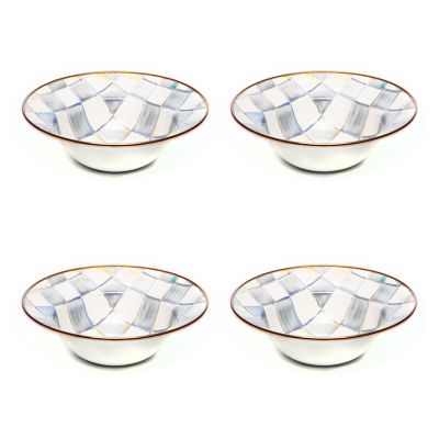 Take a moment out of your hectic schedule to start your day right with our Sterling Check Enamel Breakfast Bowl. Similar in theme to our signature Courtly Check® enamel pattern, Sterling Check checks all our boxes. The heavy-gauge steel underbody is glazed with hand-painted, color-dragged checks in subtle shades of grey and rimmed in bronzed stainless steel.
