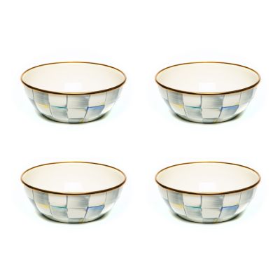 Our Sterling Check Enamel Everyday Bowl is a durable bowl that’s a must-have in the kitchen. It’s decorated in color-dragged checks in subtle shades of grey over a versatile steel underbody.