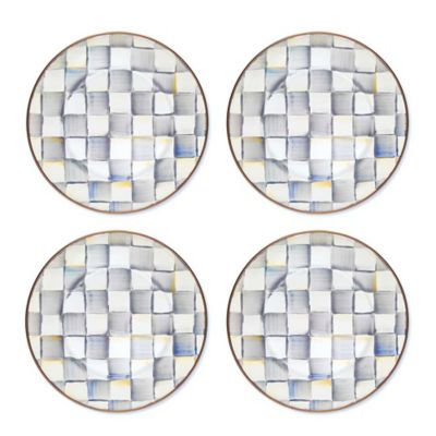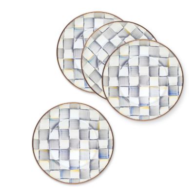 Set a place at the table for our Sterling Check Enamel Salad/Dessert Plate. Similar in theme to our signature Courtly Check® enamel pattern, Sterling Check checks all our boxes. The heavy-gauge steel underbody is glazed with hand-painted, color-dragged checks in subtle shades of grey and rimmed in bronzed stainless steel.