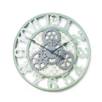 Sync your schedule to MacKenzie-Childs time. Our Small Sterling Check Farmhouse Wall Clock is the perfect timekeeper in any room, from the kitchen to the board room. Featuring our Sterling Checks and exposed clock gears in the center, encircled by iron numbers, it makes watching the clock a charming activity.