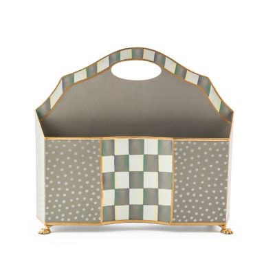 The Sterling Check® Magazine Holder is a fabulous and functional piece, made of iron and featuring a hand-painted design of Sterling Checks, Stripes, and dots, edged with golden trim.