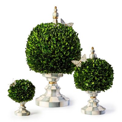 Our simple yet charming Medium Sterling Check® Boxwood Centerpiece is made of real preserved boxwood greenery in a hand-painted Sterling Check vessel. It’s trimmed with Sterling Check butterflies and finial.