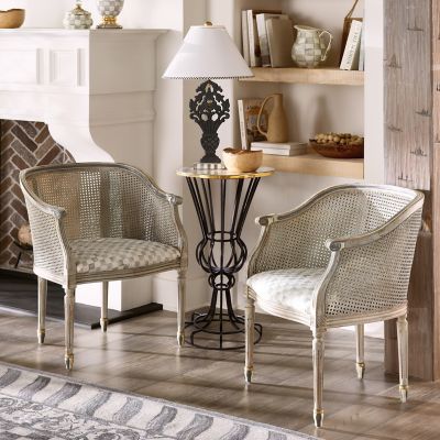 Sit back and relax in the Sterling Check® Perfetto Accent Chair. This Italian-made beechwood chair features a caned back and sides. It’s hand-painted and hand-finished in grey tones and upholstered with Sterling Check cotton linen fabric. Perfect as a stand-alone chair, it also pairs with our pedestal dining tables.