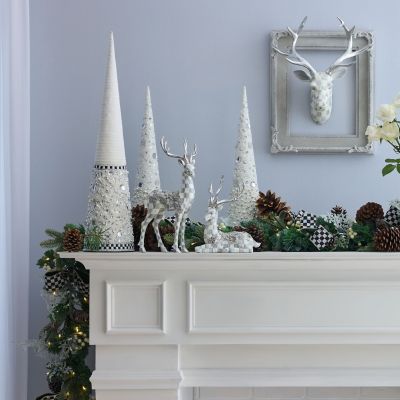 Deck the halls with the Sterling Check® Resting Silver Garland Deer, decorated head to hooves with Sterling Check and accented with a silver leaf floral garland relief pattern. Additional silver leaf is on the antlers and hooves.