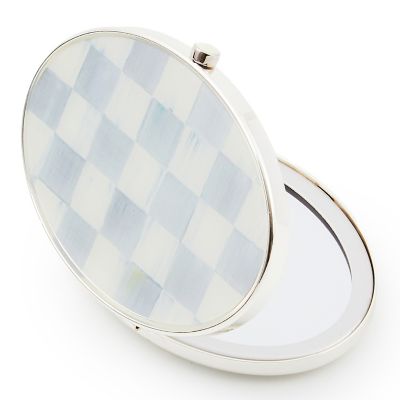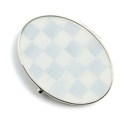 Here’s looking at you with our Sterling Check® Silver Plated Compact Mirror. Made of silver plate, it features an enameled coating of Sterling Check with double mirrors inside. It’s presented in a velvet pouch and beautifully boxed for easy gift giving.