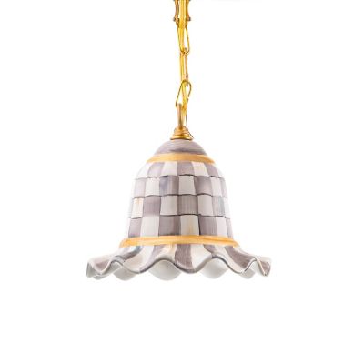 The comely ripples of our fluted Small Sterling Check® Pendant Lamp are perfect in a warm, inviting kitchen; by a desk or comfy chair in the den; or as a fresh take on a formal dining room. Featuring hand-painted ceramic with color-dragged grey checks by our master Aurora artisans, each piece is unique, simultaneously timeless and modern.