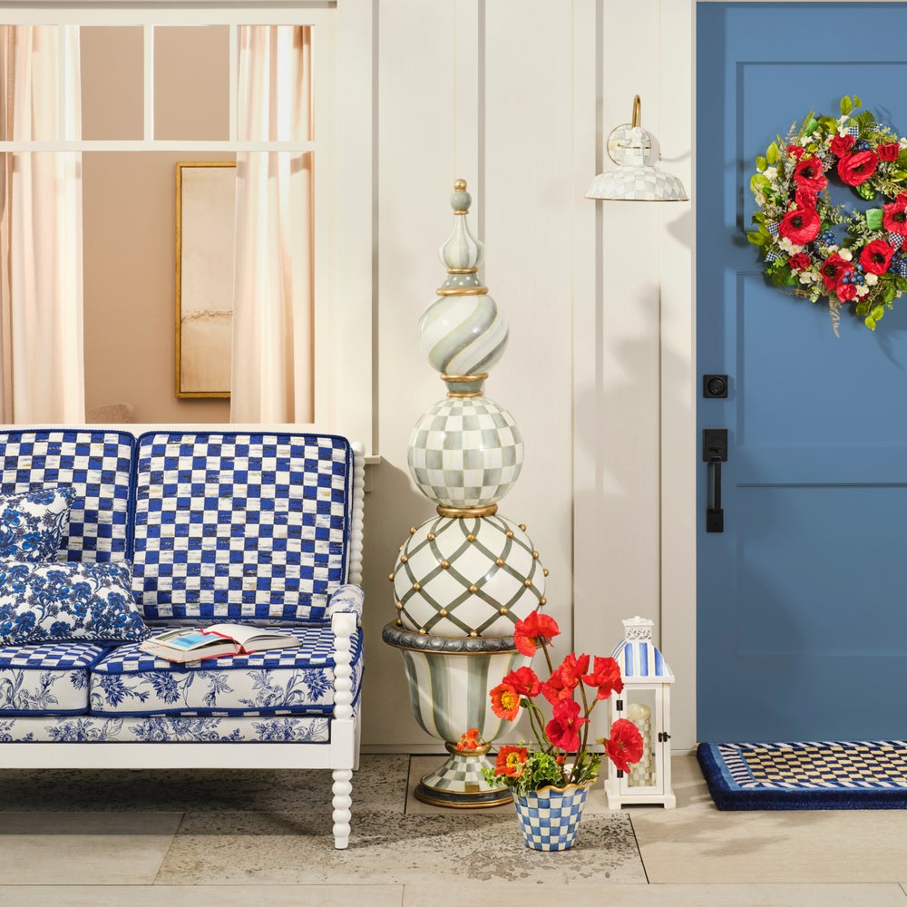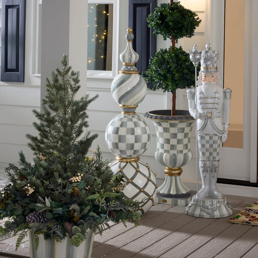 Our Sterling Check® Trophy Topiary takes first prize every time. This stack of hand-painted, weather-resistant Sterling Check geometric shapes separates into two pieces. To display, put sand in the bottom piece and add the top. For a stunning statement, indoors or outdoors, place the topiary in our hand-painted Sterling Check Pedestal Urn.