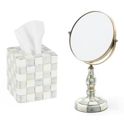 Create an elegant arrangement in the kitchen or bath with our Sterling Check Vanity Mirror & Tissue Box Cover Set. The simple elegance of our most popular pattern makes it part of a useful gift set to accent any decor; add our matching soap dish to make a good thing even better.