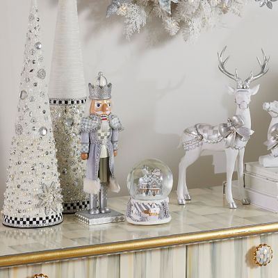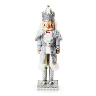 Get cracking and add this wooden, hand-painted nutcracker that shimmers from head to toe in silver and Sterling Check® to your holiday collection. Delightful details include faux fur trim on a velvet coat and a glittered striped hat.