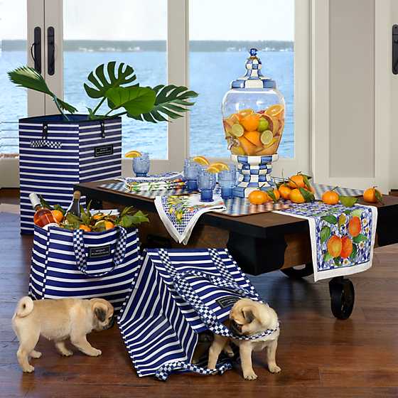 Set the table for celebration with our set of four Sun Kissed Napkins, which feature colorful citrus fruits atop a pattern of blue and ivory checks. These napkins are sure to bring sunshine to any setting, especially a weekend brunch!