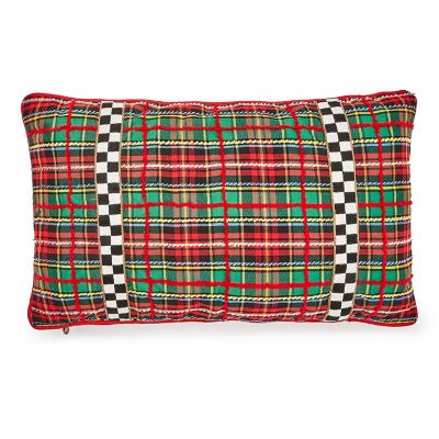 Add comfort and joy to your holiday home with this lumbar pillow, featuring tartan and checks all around with a touch of bugle beads. It’s finished with red velvet piping.