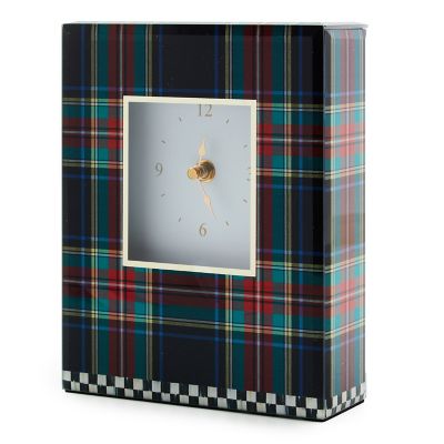 Make time for sophisticated style with this sleek clock, featuring black tartan under mirrored glass and accented with a beveled edge.