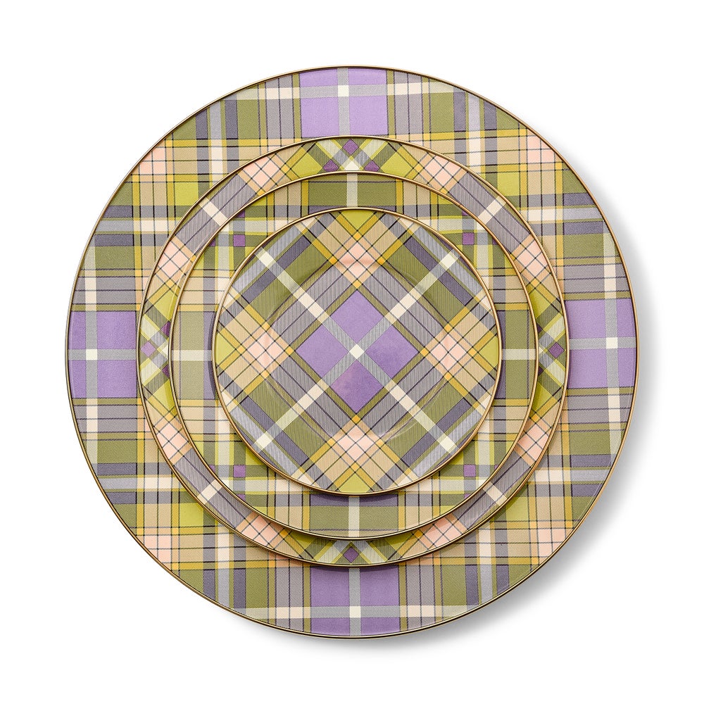Make your next tablescape one to remember with the Tartan Violet Serving Platter. The heavy-gauge steel underbody features our hand-applied tartan pattern, rimmed in bronzed stainless steel. Elevates any dinner party or casual weeknight meal. Pair with the rest of the Tartan Violet dinnerware, or mix and match with our other iconic patterns.