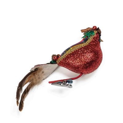 Add something unexpected to floral arrangements or fill in Christmas tree’s nooks and crannies with this glittered red tartan cardinal clip that is finished with feathers on its tail and a stick of cinnamon on its head.
