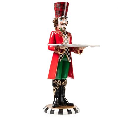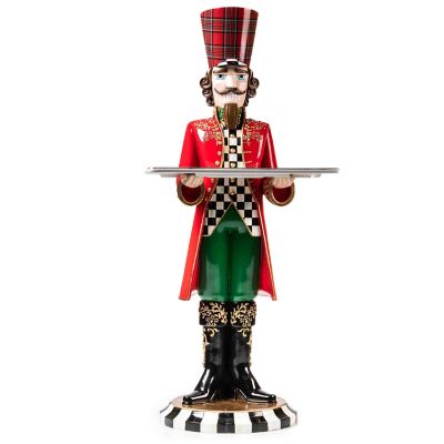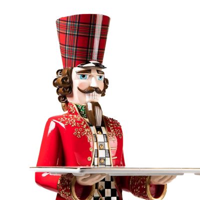 Create a special display or serve holiday treats with this hand-painted, tartan-wearing nutcracker holding an attached ceramic tray.