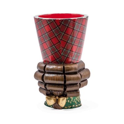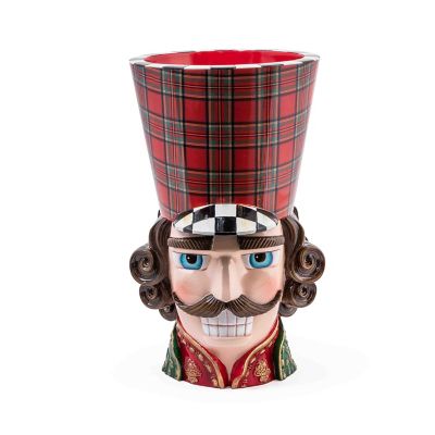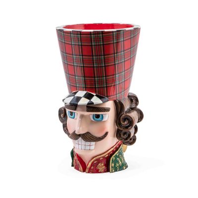 Deck the tabletops with this nutcracker planter decorated with tartan on its helmet. It’s perfect for a potted poinsettia and is sized to hold our tartan-trimmed centerpiece.
