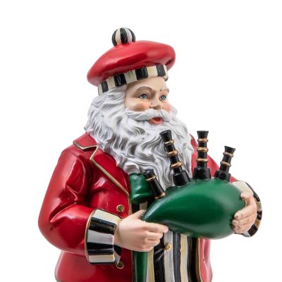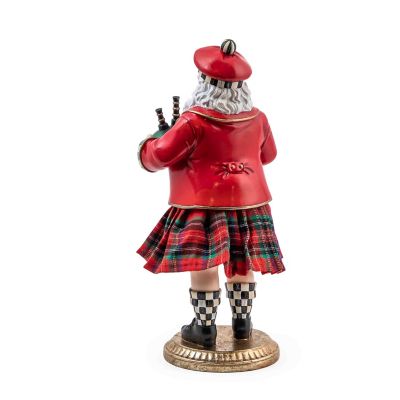 Deck the tabletops or the mantel with this hand-painted Santa, wearing Courtly Check® socks and a tartan fabric kilt, who’s carrying bagpipes.