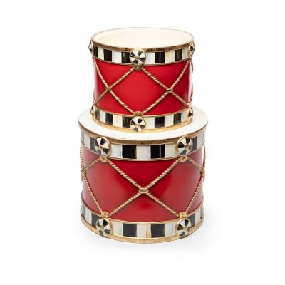Our set of two fun and functional Toyland Drums are perfect for your holiday displays. Painted merry and bright red and accented with Courtly Check®, use them to hold a potted poinsettia or add height to your vignettes.