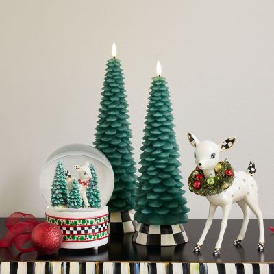 The holidays will be aglow with this battery-operated, pine tree-shaped tall candle, featuring a flicker flame. It sits on a separate Courtly Check® base.