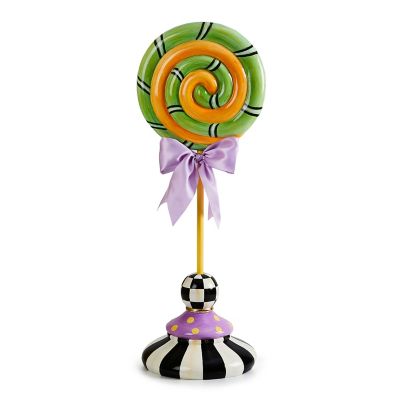 Make your Halloween decor sweetly spook-tacular with this large lollipop topiary done in confectionary colors and set on a base decorated with Courtly patterns.