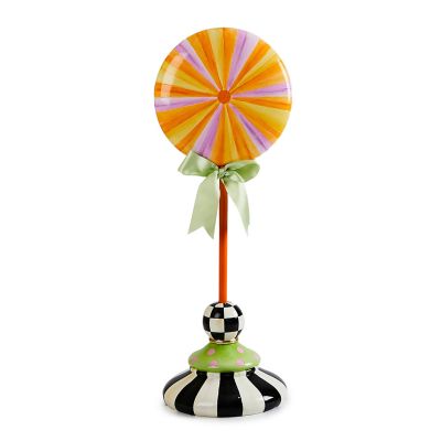 Make your Halloween decor sweetly spook-tacular with this medium lollipop topiary done in confectionary colors and set on a base decorated with Courtly patterns.