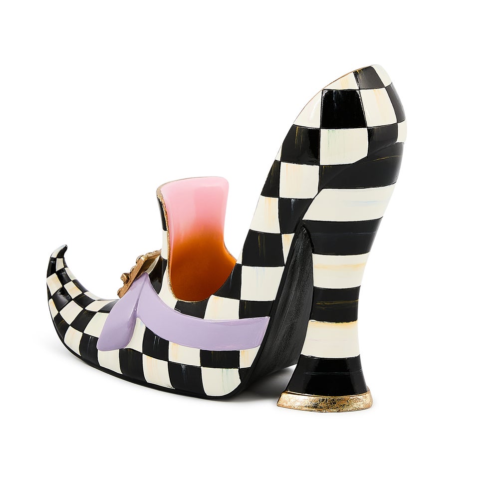 Add a playful touch to your Halloween decor with the Trick or Treat Witch’s Shoe Figurine. This whimsical shoe, with its vibrant colors and Courtly Check details, brings a charmingly spooky element to your seasonal setup.