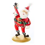 Trim the Tree Santa is sure to make you smile. Made of hand-painted tin, it stands on a glittered gold base, and its bright red cap is trimmed with faux marabou feathers. In its hands, Santa holds a strand of holly for the tree. Pair it with the Bird’s the Word Santa for a fun and festive display.
