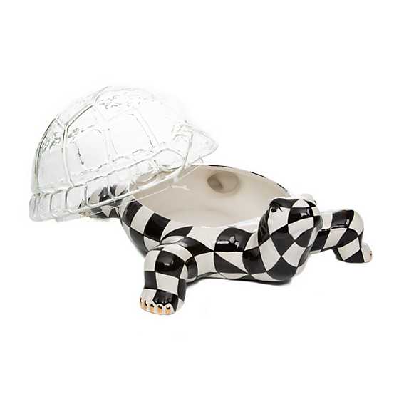 Slow down and savor gardening under glass with our ceramic Turtle Terrarium. Hand-painted with checks and trimmed in chartreuse, the glass lid lifts off so you can add plants inside.