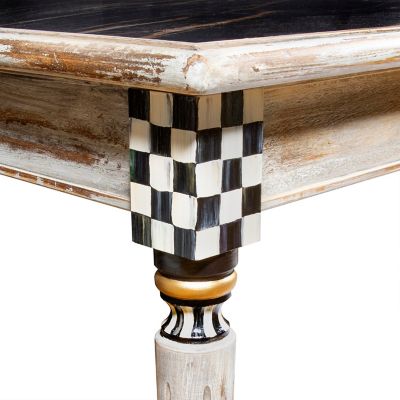 Our Tuscan Farm 54” Dining Table is the perfect place for family and friends to gather. Made of tulip wood and beechwood with a hand-applied, multilayer finish, its porcelain top, featuring classic marble veining, is stain- and heat-resistant. A bonus drawer lined with Courtly Stripe offers a spot for linens or silverware. Additional hand-painted Courtly Check® and Courtly Stripe are added to the apron and the legs by our Aurora, New York, artisans. This table seats up to six and can be paired with several of our existing dining chairs. It’s also perfect as a desk or work surface.