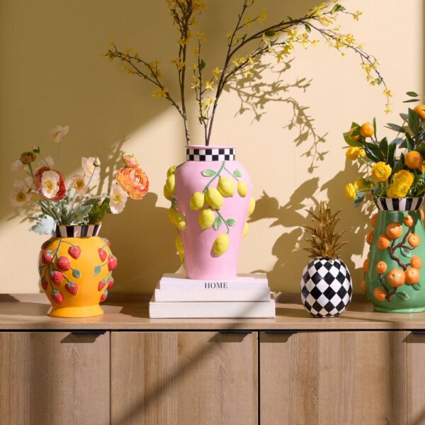 Squeeze the day and display fresh flowers in this hand-painted ceramic vase that’s accented with a relief display of lemons and trimmed with gold lustre.