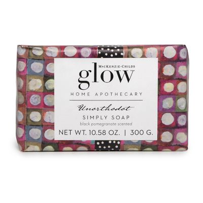 MacKenzie-Childs Glow Home Apothecary defines the essence of home with fresh and inviting scents. Our Large Unorthodot Bar Soap is a unique product with a fresh scent of fruity black pomegranate with a woody finish. It is formulated from natural ingredients that leave your hands soft and clean.