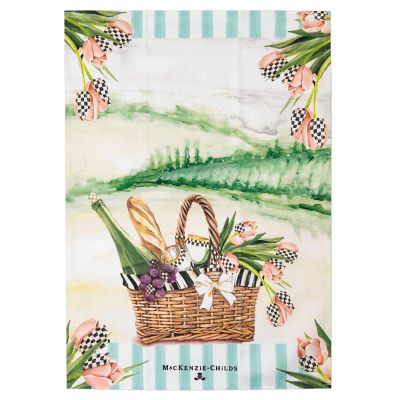 Add a bit of picnic-fresh whimsical art to your kitchen with our Vino Alfresco Dish Towel, which features an MC picnic basket for a Vino Alfresco celebration, printed on 100% cotton. Handy as a dish towel or framed and hung on a wall, it’s sure to receive compliments from your guests.