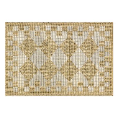 Put on a floor show with this 2′ x 3′ indoor/outdoor rug made of woven polypropylene and featuring a harlequin pattern, paired with a check border. It can be used indoors or outdoors in a shaded or covered area with limited direct exposure to sunlight.