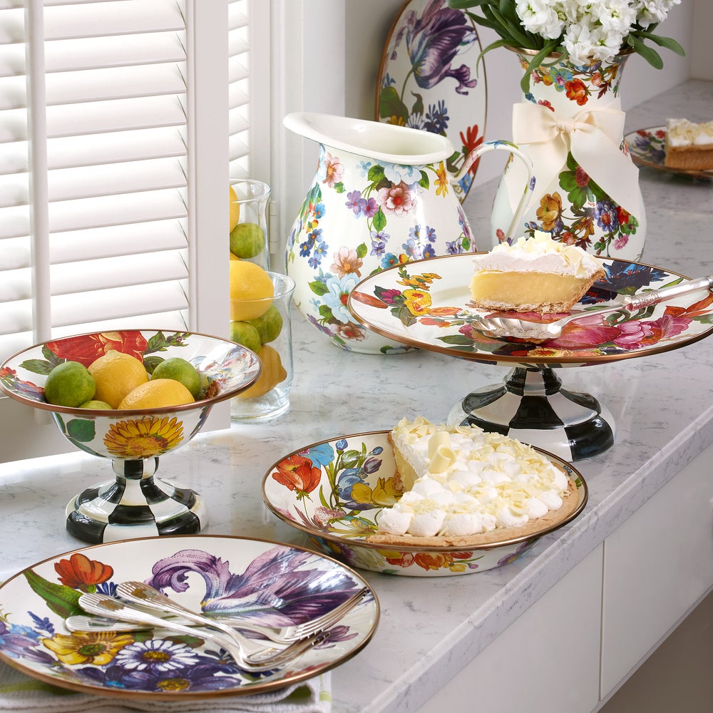 Set a sunny table in glorious color, fresh from a country garden, with White Flower Market Enamel Dinnerware. The garden-fresh design is color-glazed and hand-decorated with floral transfers on both sides.