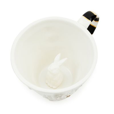 Set the scene for spring celebrations with this ceramic bunny mug that features a surprise bunny inside. It’s trimmed with hand-painted check accents and a striped handle with gold lustre.