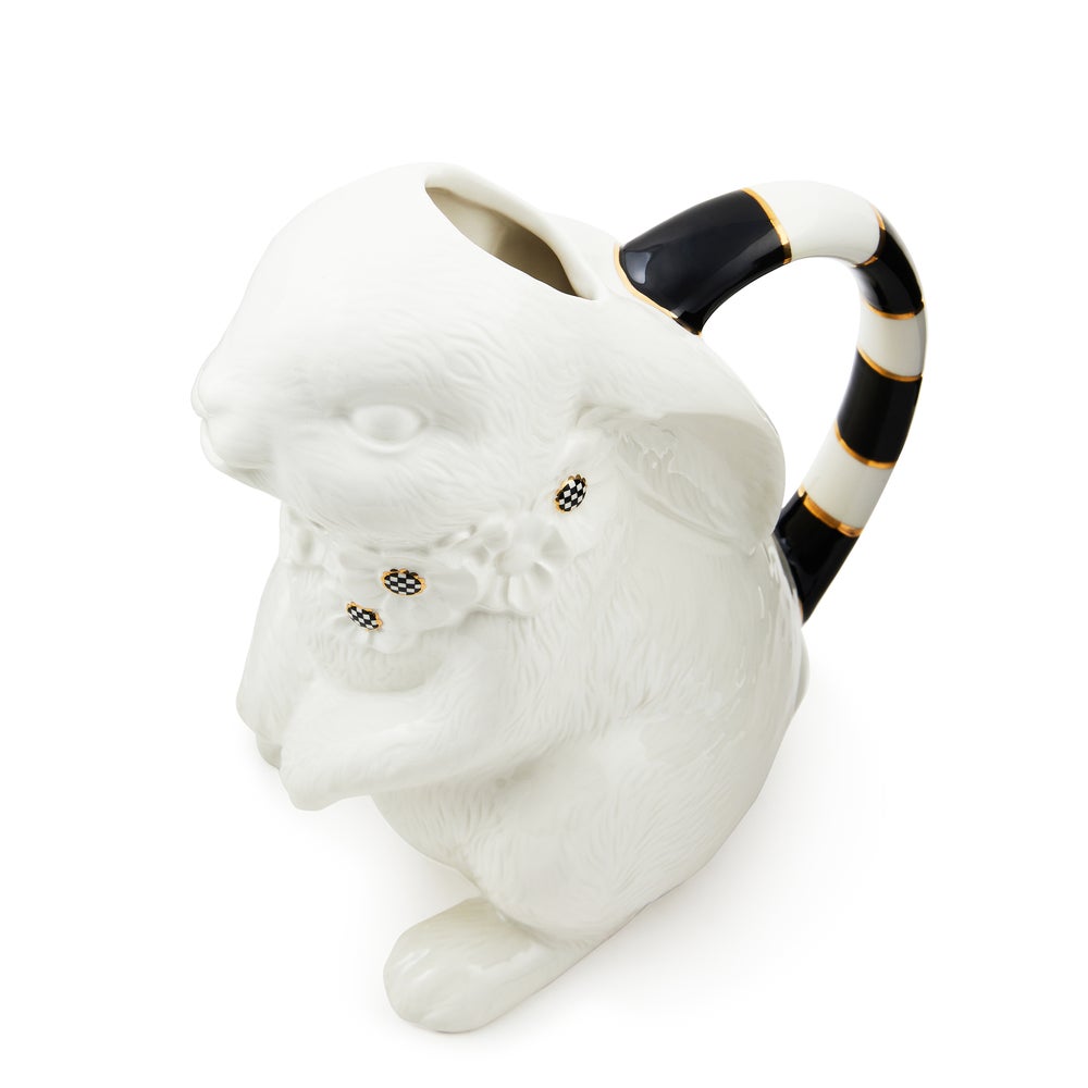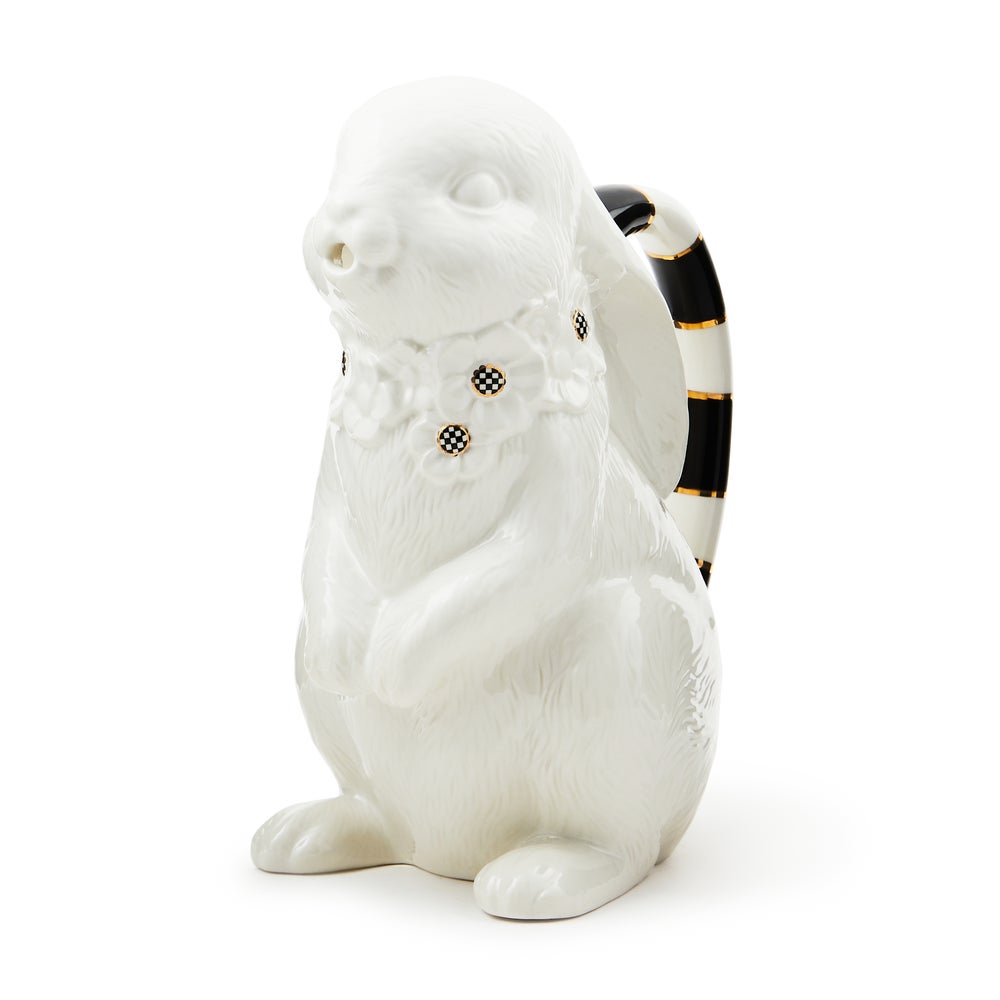 Set the scene for spring celebrations with this ceramic pitcher. It’s shaped like a bunny and accented with hand-painted check florals and a striped handle that is finished with gold lustre.